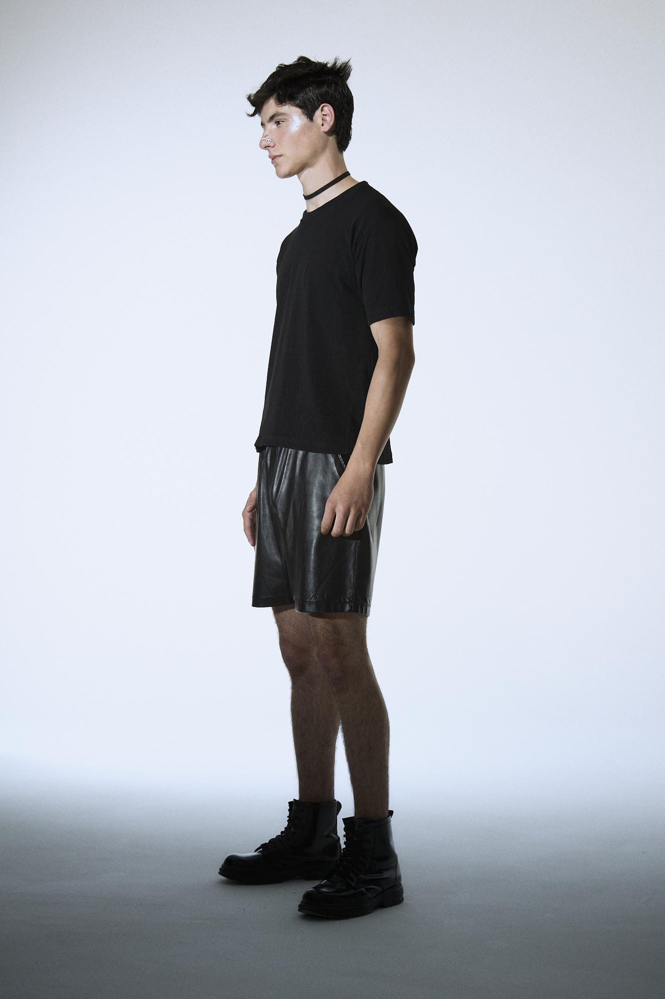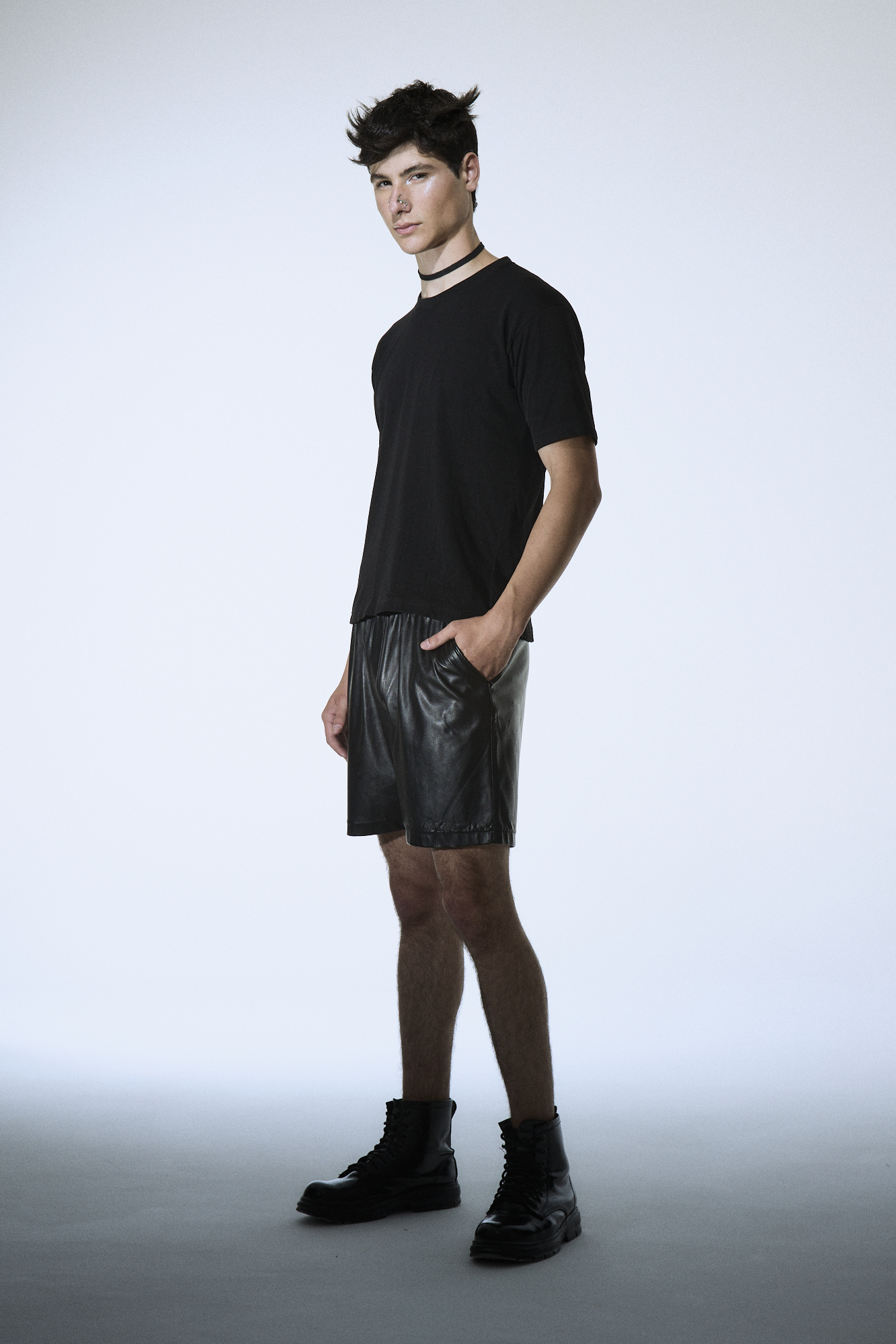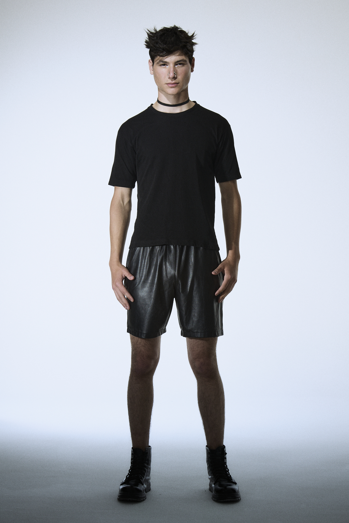 Bermuda de simil cuero con cintura elastizada y cordón para regular.